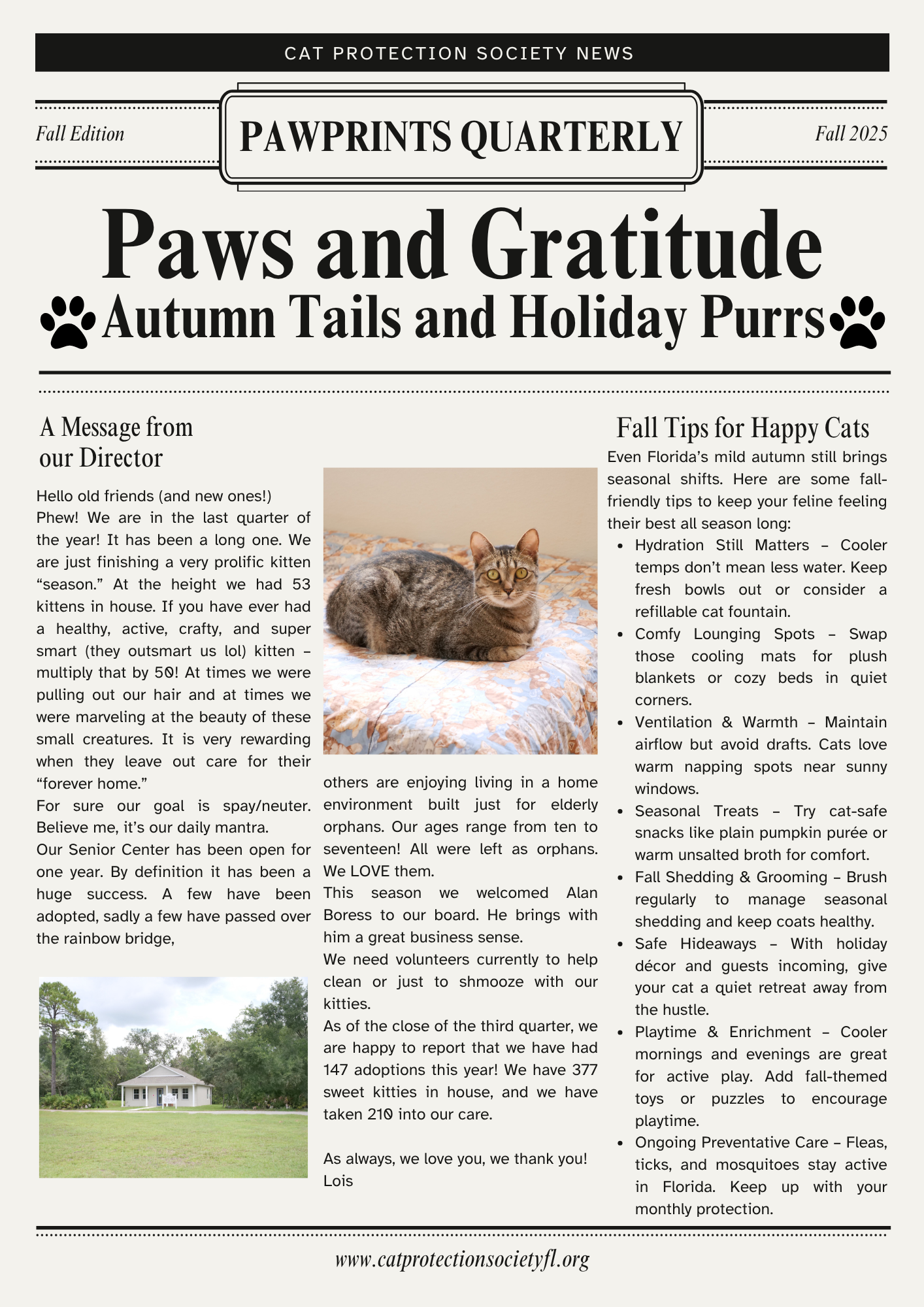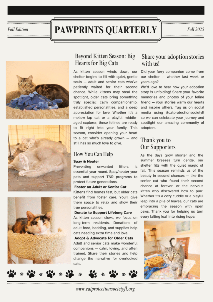 Stay informed and engaged with the latest from the Cat Protection Society-helping cats one update at a time.